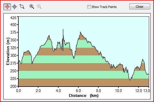 Peter even de afstand die we tot nog toe verteerd hebben. Blijkt dat we