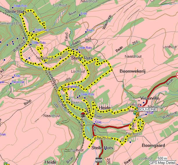 1/25.000 49/5-6. Een stafkaart kan je hier best bij de hand